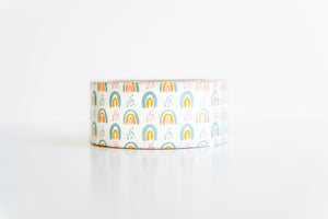 Our colorful packaging tape features a cute boho rainbow print that is the best way to give a great first impression to your business. These tape rolls are perfect for sealing boxes, envelopes and more! Add flair to your packaging with our custom designer tape rolls!