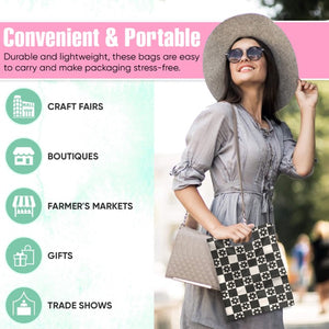 Whether you're a boutique owner, market vendor, or planning a pop-up shop, these bags are ideal for carrying clothing, accessories, skincare, candles, jewelry, drinkware, and gift items. Their stylish appeal makes them a perfect fit for retail, craft fairs, and special event giveaways.