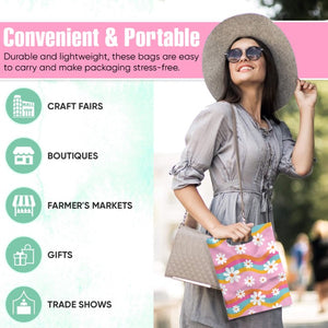 Whether you're a boutique owner, market vendor, or planning a pop-up shop, these bags are ideal for carrying clothing, accessories, skincare, candles, jewelry, drinkware, and gift items. Their stylish appeal makes them a perfect fit for retail, craft fairs, and special event giveaways.
