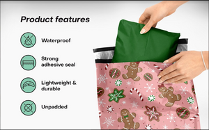 Our poly mailers 100 pack feature a cute, Christmas seasonal print with a self-adhesive strip & is the best way to give a great first impression to your customers. These peel and seal envelopes are Tear-Proof and 100% Waterproof. Our 10x13 poly mailer envelopes for small business are USPS, UPS, FedEx & DHL approved so you can ship with confidence!