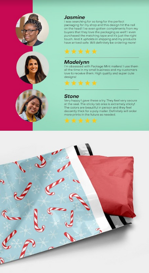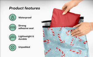 Our 100 pack of 10” x 13” poly mailers feature a holiday theme print that is the best way to give a great first impression to your business. Perfect for winter, Christmas, and the holiday shipping in style! These peel and seal cute shipping bags are tear-proof and waterproof. Our shipping bags for clothing are USPS, UPS, FedEx & DHL approved so you can ship with confidence!
