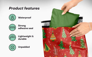 Our poly mailers 100 pack feature a cute, Christmas seasonal print with a self-adhesive strip & is the best way to give a great first impression to your customers. These peel and seal envelopes are Tear-Proof and 100% Waterproof. Our 10x13 poly mailer envelopes for small business are USPS, UPS, FedEx & DHL approved so you can ship with confidence!