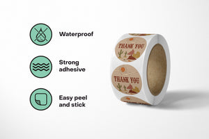 • 500 Thank You Business Stickers: Our thank you labels are the perfect way to express gratitude to your customers and stand out from the crowd! Our business stickers are on a roll with 500 1.5” label stickers that feature a desert and cactus design to make your packaging attractive & beautiful.